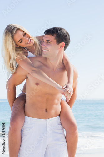 young adult, woman, female, caucasian, 20s, man, male, outdoors, beautiful, pretty, photogenic, attractive, sexy, fit, coastline, shore, summer, holiday, beach, sunny, bright, vacation, sea, ocean, sunshine, sunlight, blue skies, standing, couple, human relationships, boyfriend, girlfriend, together, affection, closeness, love, romance, romantic, happy, smiling, cheerful
