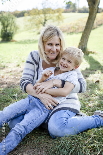 happy mother and son outdoors