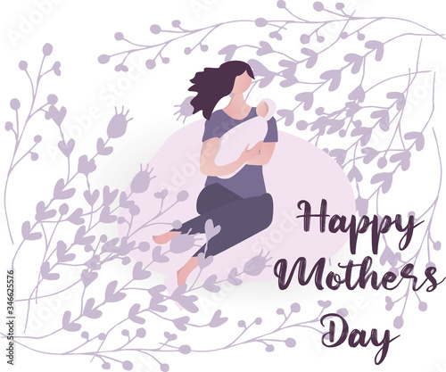 Happy Mother’s day design greeting card. Vector illustration good for the mom holiday,poster,banner,invitation,postcard,wallpaper,background, brochure.Mother character holding baby on her hands