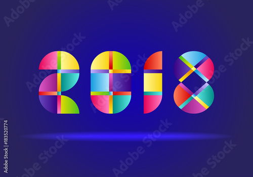 2018, christmas, new, year, 2, zero, 1, 8, red, colourful, blue, yellow, light, shadow, number, holiday, celebration, happy, eve, date, illustration, party, event, design, symbol, season, signs, calendar, background, christmas, jan, december, concept, card, winter, shape, creative, day, modern, colours, merry, abstract, celebrate, cheer, decoration, greeting, template, round