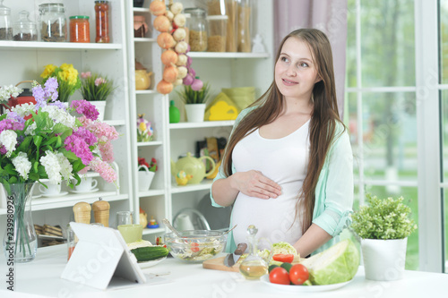 activity, adult, breakfast, cabbage, caucasian, cheerful, cooking, eating, european, family, food, fun, happiness, happy, healthy, home, kitchen, life, love, lunch, morning, mother, eltern, people, pregnant, preparing, receipe, salad, smile, smiling, sunny, table, tasty, vegetable, wife, woman
