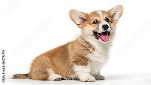 happy Puppy Welsh Corgi 14 Weeks old, dog winking, panting and sitting isolated on white