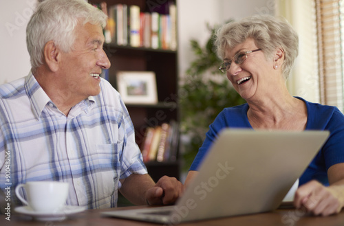 Happy senior couple using their laptop
