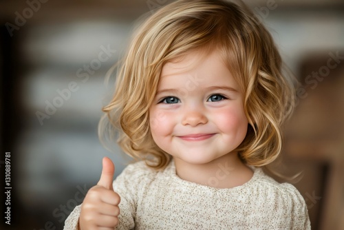 baby, girl, toddler, children, children, blond, hair, blue eye, portrait, smiling, happy, childhood, happiness, joy, cheerful, thumb, thumb up, gesture, agreements, approval, like, positive, success, ok, ok, fun, cute, adorable, expression, emotion, 1, young, caucasian, head shot