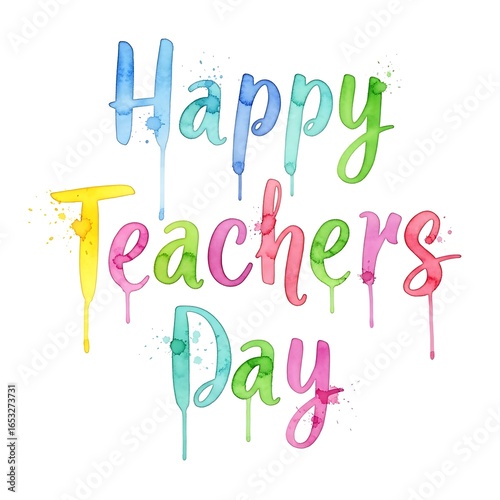happy, teacher, day, celebration, greeting, card, education, school, learning, cognition, appreciation, gratitude, thank, you, poster, banner, design, art, watercolor, paint, brush, stroke, colourful, vibrant, bright, fun, joyful, festive, holiday, event