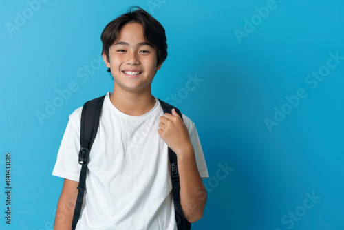 teenage, boy, backpack, school, student, smile, smiling, happy, asian, guy, back to school, cheerful, blue, background, youth, education, portrait, copy, space, empty, happiness, joyful, single, 1, person, people, male, teenage, casual attire, standing, positive, teenage, young, lifestyle, bright, t-shirt, white, confidence, friendly, isolated, innocence, fun, educational