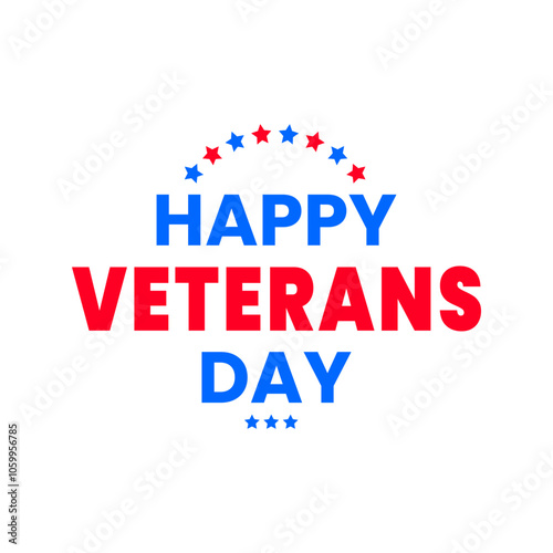 Happy Veterans Day Typography with Stars for Celebration USA Veteran Holiday in November to Honoring All Heroes Who Served. Vector isolated on white