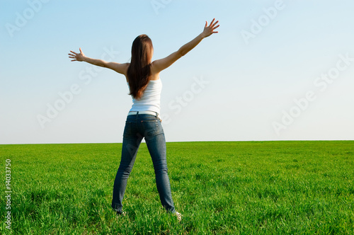 adult, attractive, back, beautiful, beauty, blue, carefree, clean, clear, delight, enjoyment, euphoria, expression, female, field, freedom, girl, glad, grass, green, hand, happiness, happy, healthy, independence, joy, lady, landscape, lifestyle, meadow, nature, 1, person, positive, purity, relaxation, sky, spring, standing, summer, sunny, teenage, up, vacation, vitality, weekend, woman, young, youth