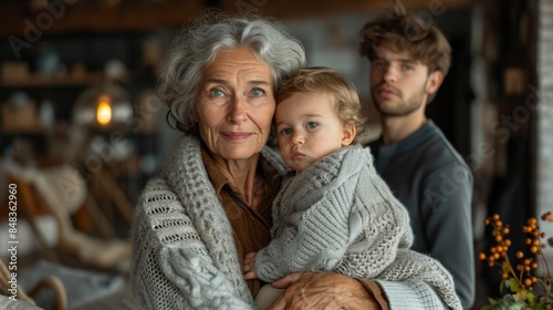 Happy woman, enjoying moments with her grandson in a warm and cozy atmosphere.