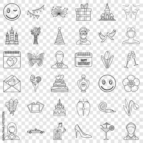 happy, woman, icon, outline, vector, illustration, set, collection, signs, object, logotype, symbol, 36, line, thin, flower, birthday, rocket, bird, dove, fly, body, ass, figure, glasses, wine, holiday, celebrate, smile, shoe, heel, head, person, hat, calendar, castle, fireworks, cake, goggles, balloon, present, gift, bow, cocktail, butterfly, music, winking, nubes, photo, letter