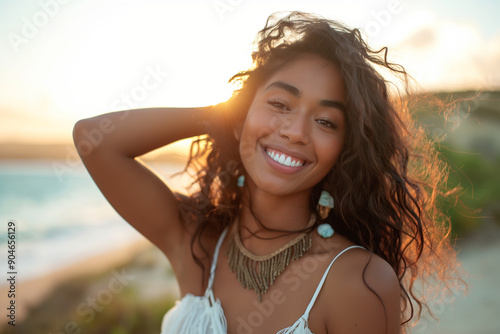 happy,woman, beach, summer, happy, beauty, girl, hair, skin, sea, bikini, portrait, smile, skincare, care, tan, outdoor, tropical, vacation, wellbeing, looking, holiday, hispanic, complexion, people,