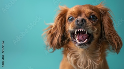 Harrier, angry dog baring its teeth, studio lighting pastel background