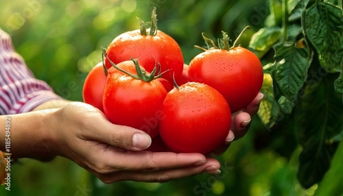 Harvesting fresh tomatoes by hand on a lush farm nature's bounty in bright green environment