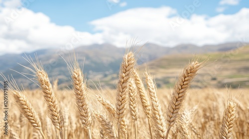 wheat, nature, mountain, vibrant, wide, serenity, serene, sunshine, peaceful, produce, harvest, farming, earth, growth, wildlife, scenery, sunlight, plant, dirtied, rustic, hill, vegetation, crop, grain, field, pastoral, healthy, stalk, sky, beauty, environment, natural, summer, fresh, organic, agriculture
