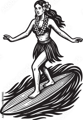 surfing, surfboard, tropical beach, summer sport, hand-drawn, paradise beach, sunny day, tropical island, outdoor sport, female athlete, illustration, vector