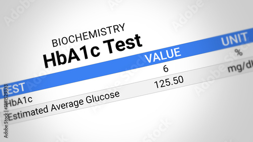 HbA1c Test Report. Blood Sugar Control, Biochemistry, Diabetes Monitoring, Average Glucose Levels, Health Assessment, Risk Evaluation, Clinical Diagnostic Reporting. HbA1c Test Report. 2D Illustration