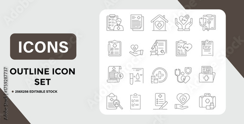Healthcare and Medical Outline Icon Set for Design and User Interfaces