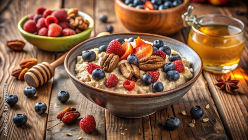 Healthy Oatmeal Porridge Breakfast: Scandinavian Style with Berries, Nuts & Honey