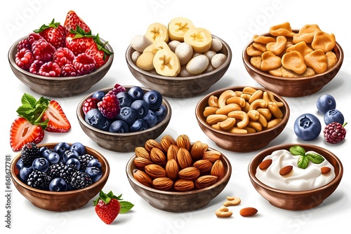 Healthy Snack Options: A Variety of Fresh Berries, Nuts, and Yogurt