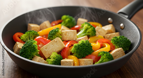 Healthy Tofu And Vegetable Stir Fry In A Pan Ready To Serve