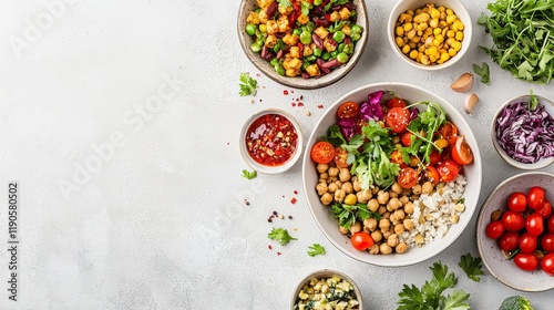 Healthy Vegetarian Feast Fresh Ingredient Bowls Modern Kitchen Food Photography Vibrant Colors Culinary Art