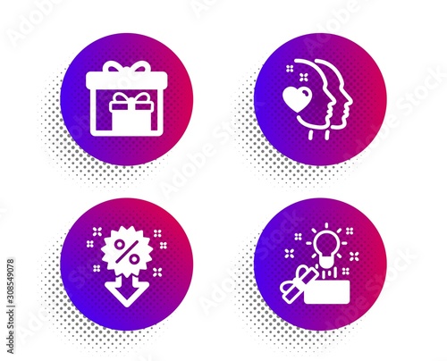halftone, gradient, nubes, discount, symbol, shopping, signs, emotion, special offer, valentine, imagination, surprise, box, bow, present, happy, percentage, icon, mind, enclosed, design, creativity, day, intelligence, human, clearance, price, head, development, idea, inspiration, down, process, web, romantic, delivery, like, box, ribbon, person, bulb, sale, shop, set, holiday, vector, buttons