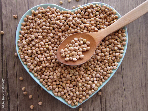 hearted chickpeas in bowl on the wooden floor.food,chickpeas,pulses