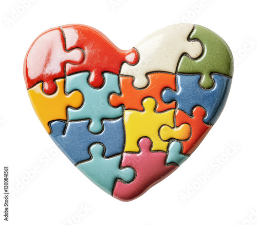 Heart-shaped puzzle with colorful pieces representing love and connection in a creative design for various projects, cut out
