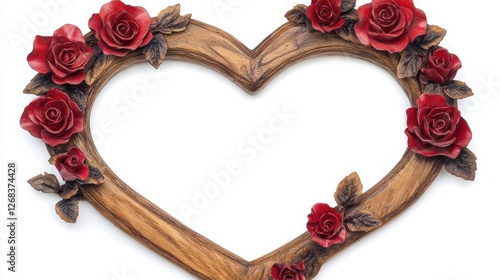 Heart-Shaped Wooden Frame Adorned with Red Roses and Leaves