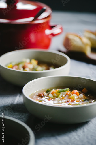 bowl, dish, fall, food, hot, lunch, meal, pesto, plate, pot, soup, vegetable, vegetarian, warm