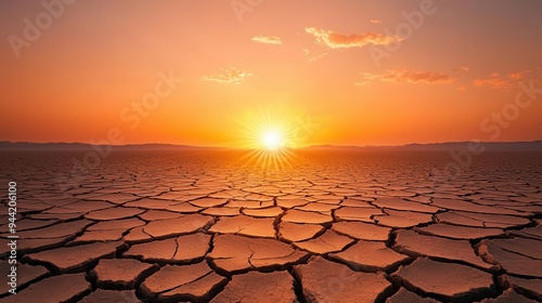 Heatwave with a blazing sun over a cracked earth landscape, extreme weather, intense heat