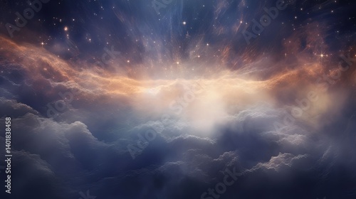 Heavenly Light Explosion Background | Glowing Stardust & Cloud Sky Scene | Mystical Galaxy Horizon Wallpaper | Dreamy Universe Light Burst | Celestial Sky with Stars