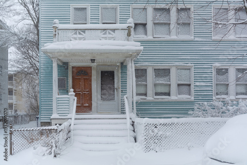 snow, winter, blizzard, winter storm, house, home, snowfall, snow-covered, boston, massachusetts, new england, entrance, residential, architecture, cold, weather, step, winter storm, white, glacé, us, front door, exterior, siding, stair, ice, winter scene, neighbourhood, covered, suburban, window, storm, frost, winter landscape, property, america, freezing, us, building, blue house, fence, hazy