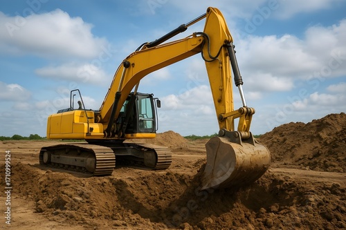 Heavy-Duty Yellow Excavator at Work on a Construction Site
