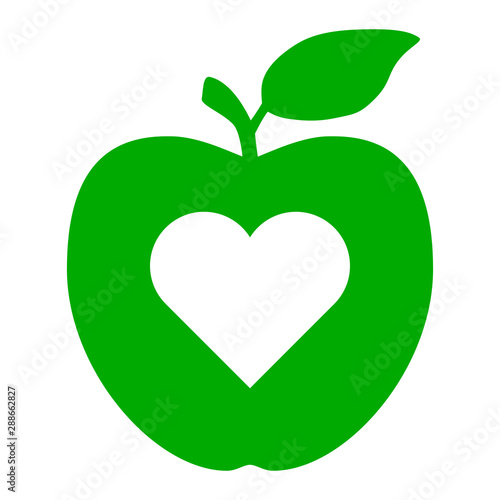cardiac, love, romantic, apple, fruit, fruit, green, white, eatery, icon, symbol, illustration, graphic, vector