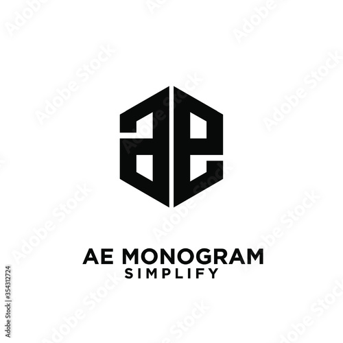 hexagonal black white luxury AE logo icon design vector