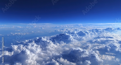 aerial, view, cloud, sky, atmosphere, weather, blue, white, cumulus, high, altitude, landscape, horizon, plane, earth, cloudscape, from, up high, fluffy, huge, wide, sunlight, illuminated, bright, daylight, large, storm, thundercloud, nature, photo, scene, image, picture, photo, photographic, photorealistic, viewpoint, elevation, panorama, angle, immensity, beauty, amazing, stunning, breathtaking, colours, high-coloured, contrast