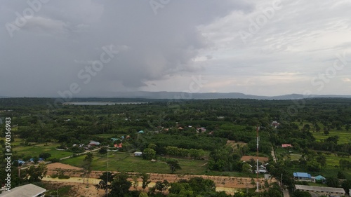 High angle shot Rural village landscape at Phusing Sisaket Thailand.