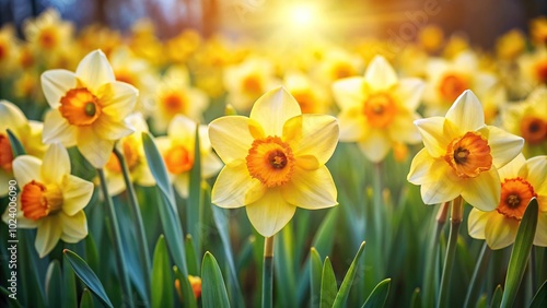 High angle view, bright, daffodils, blossom, spring, stunning wallpaper background