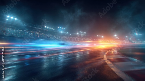 racing, night time, energy, stadium, light, motion, speed, excitement, crowd, car, track, vibrant, urban, sport, competition, event, adrenalin, illumination, dynamic, action, blurred, vehicular, thrill, entertainment, fun, automotive, performance, asphalt, journey, racer, colourful, spectacle, scene, photo, weather, water, rapid, race, lap, show, bustling, urbanity, challenge, life events, enthusiasm