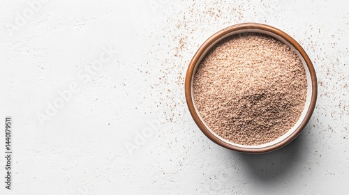High Fiber Psyllium Powder in Bowl on White Background for Health Supplements