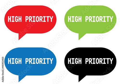 HIGH PRIORITY text, on rectangle speech bubble sign.