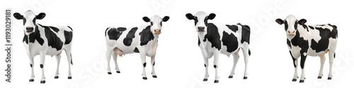 High quality 3D dairy cows with black and white patterns, showcasing their unique features and expressions