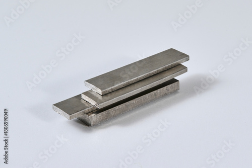 High quality close up image of stainless steel metal bars and flat sections with smooth industrial texture, suitable for construction, engineering, manufacturing, and industrial design concepts.