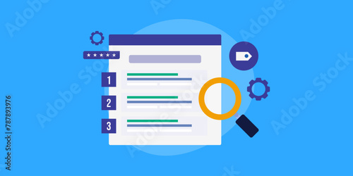 High ranking on search engine, SEO optimization marketing software service e-business technology concept, vector illustration.