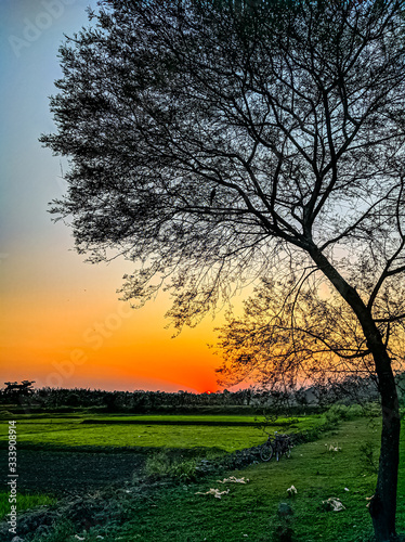 tree, landscape, sunset, sky, nature, field, tree, sunrise, sun, grass, spring, forest, fog, green, cloud, silhouette, autumn, morning, mist, countryside, meadow, dusk, blue, horizon, park