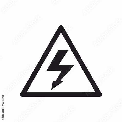 High voltage warning triangular Icon. Lightning bolt, thunder symbols or flash pictogram. Electrocution danger illustration.