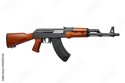 ak-47, rifle, assault rifle, firearm, gun, weapon, automatic, kalashnikov, military, army, combat, defense, security, high key, photo, isolated, white background, lighting, clean, polished, surface, realistic, texture, metal, wood, pristine, professional, hi-res, commercial, editorial, reference, technical, documentation, historical, arm, weaponry