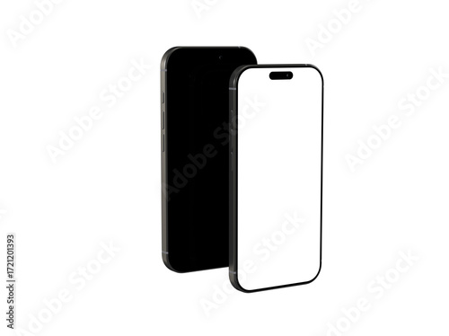 High-quality stock photo of a modern black smartphone mockup. Perfect for app presentations, website designs, and technology marketing materials. Blank screen for eas