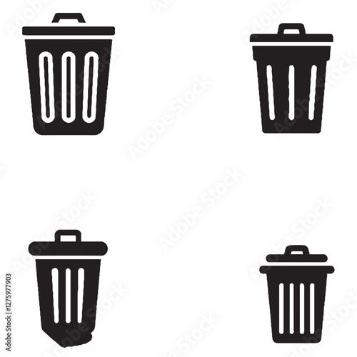 "High-Quality Vector Silhouette of a Waste Bin on White Background"